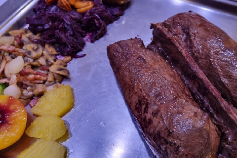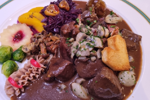 Entrecôte de cerf des au gin du Val-de-Travers, fricassée de champignons des bois, Garniture « Grand-mère »
