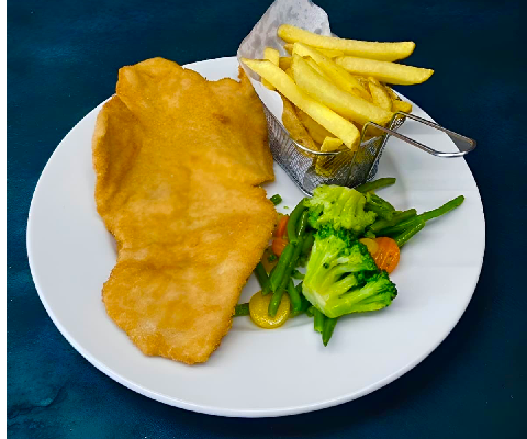 Paniert Kalbsschnitzel mit Pommes Frites und Gemüse